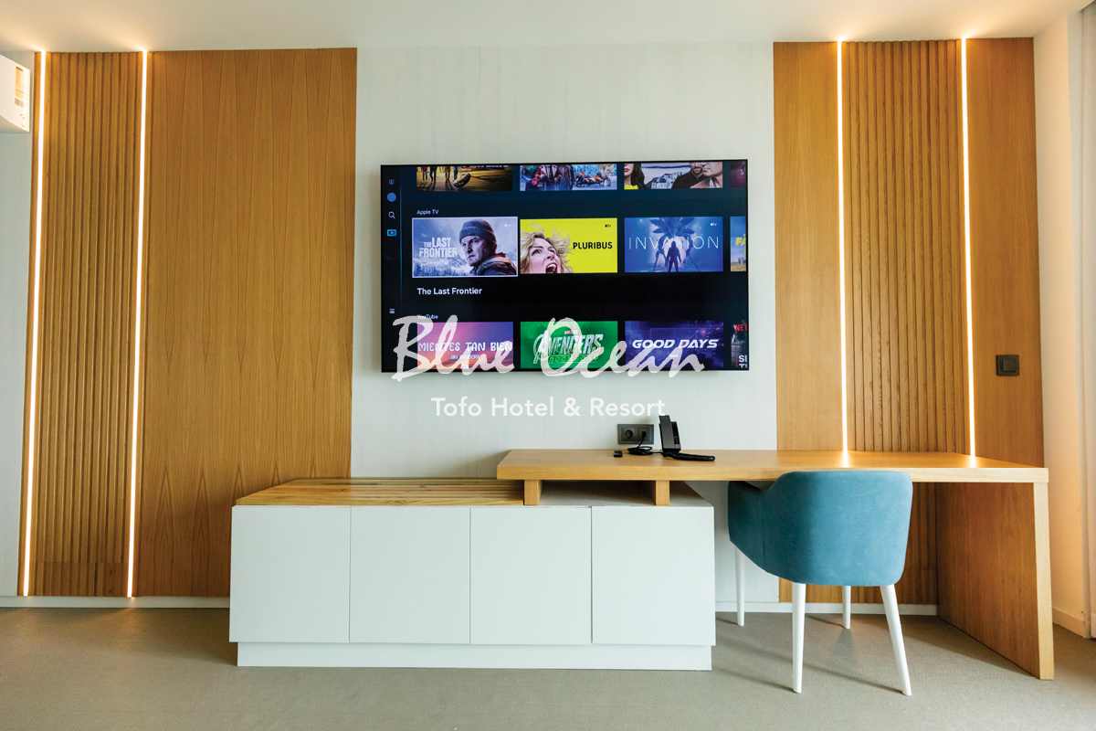 Oferecemos 7 tipos diferentes de suítes, todas com pequeno-almoço incluído, Wi-Fi gratuito, ar condicionado e vista para o mar ou pôr-do-sol. Total de 38 quartos para garantir o máximo conforto durante a sua estadia.