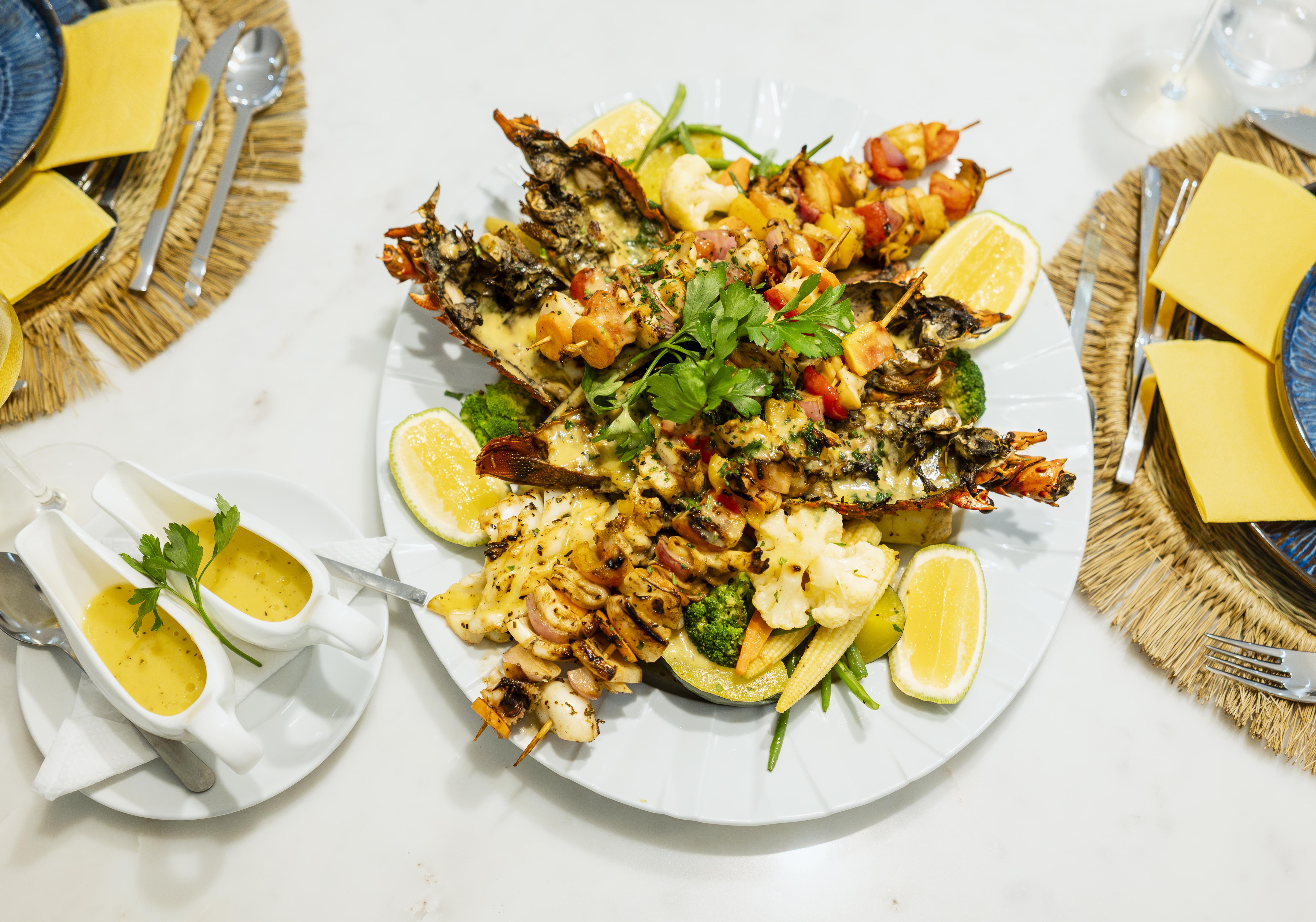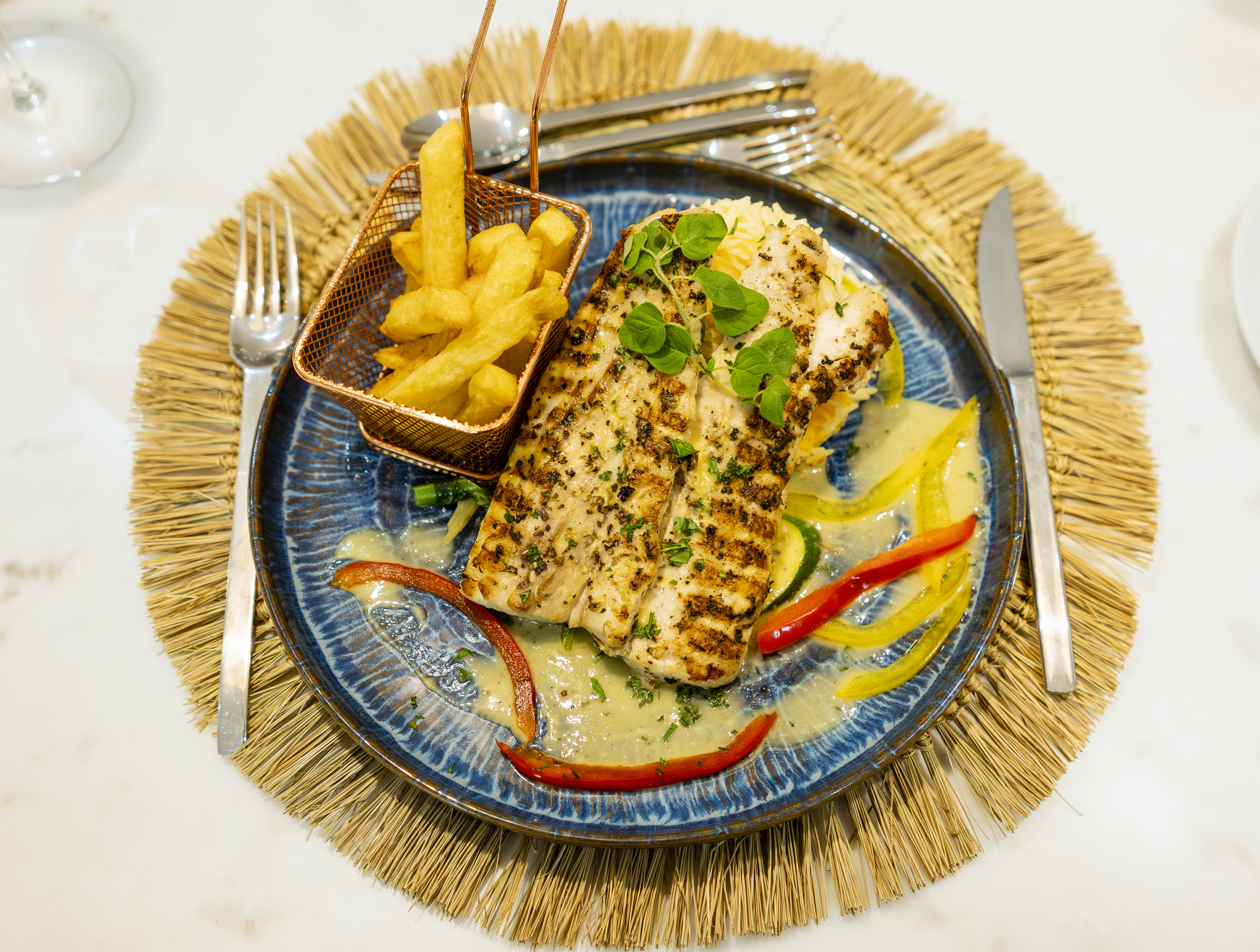 Menu à la carte sofisticado com especialidades de marisco fresco do dia, pratos tradicionais moçambicanos autênticos e opções internacionais refinadas. Desfrute da vista hipnotizante para o mar durante a sua refeição.
